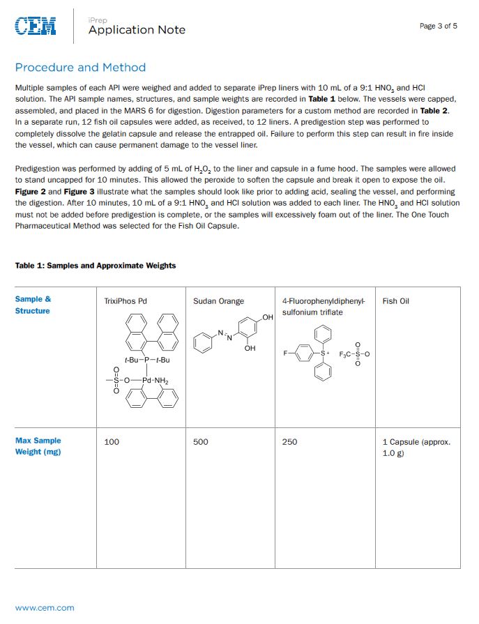 Aufschluss von schwierigen pharmazeutischen Proben und Fischöl Kapseln gemäß USP