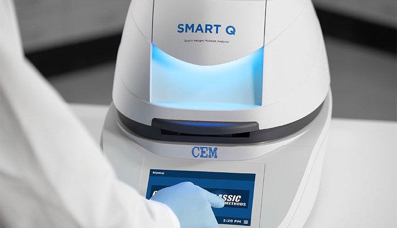 Mit dem SMART Q hat CEM die schnellste Halogen-Trocknungswaage der Welt als Feuchtebestimmer entwickelt. Gegenüber den klassischen Halogen- und IR-Feuchtebestimmern trocknet das SMART Q sehr viel schneller in typischerweise 5 min. die Proben und erzielt dabei noch eine höhere Präzision der Feuchtegehalte.