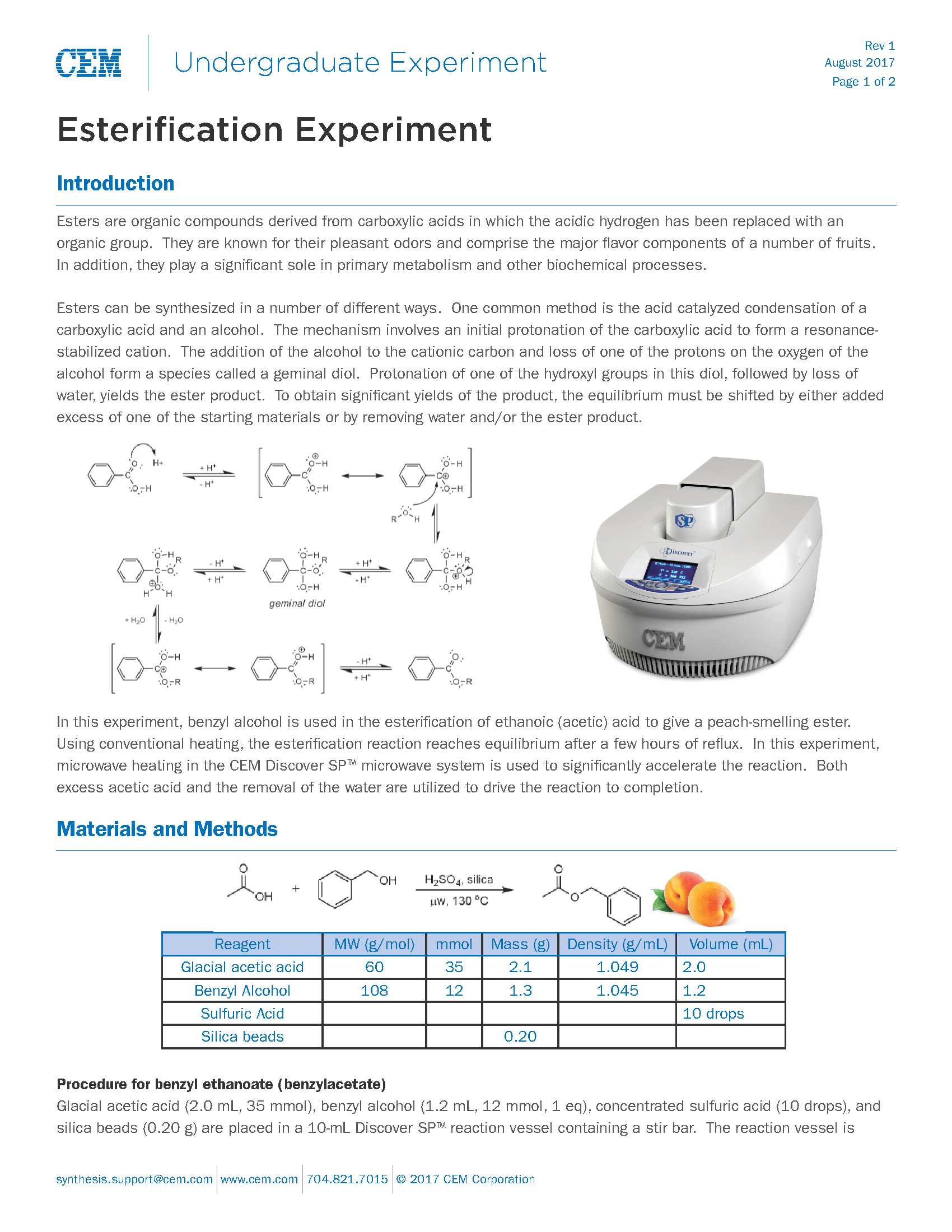 Schnelle Veresterungsreaktion in der Discover Mikrowelle 30. Aug. 2017 | Ulf Sengutta 525_Experiment_Peach_Esterification_rev1 mehr… #Discover#Mikrowelle#Mikrowelle Chemie#Mikrowellen Synthese#Mikrowellenchemie#Mikrowellensynthese Vorteile#Organische Chemie#organische Synthese#Synthese Chemie