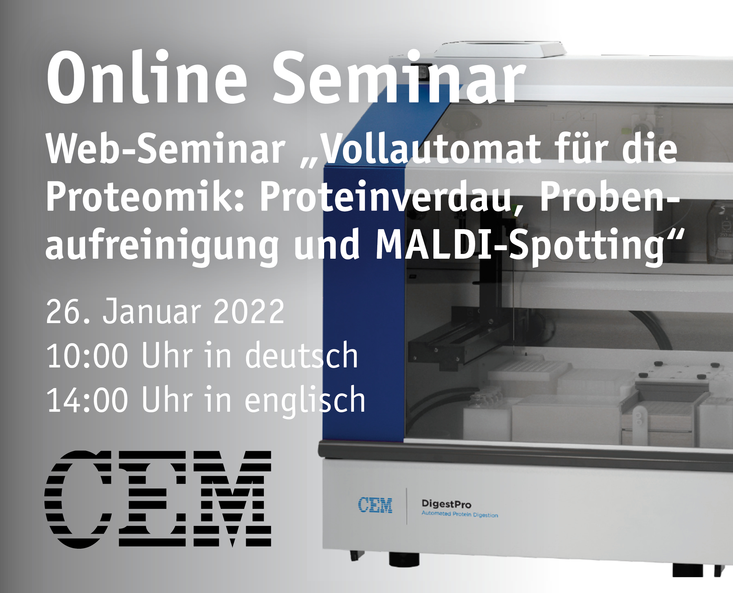 Web-Seminar „Vollautomat für die Proteomik: Proteinverdau, Probenaufreinigung und MALDI-Spotting“ am 26. Januar 2022